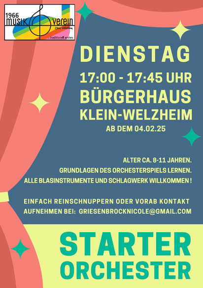 Der Musikverein Klein-Welzheim gründet ein neues Starterorchester für Kinder zwischen 8 und 11 Jahren. Die jungen Musiker haben die Möglichkeit das Orchesterspiel zu entdecken und ihre